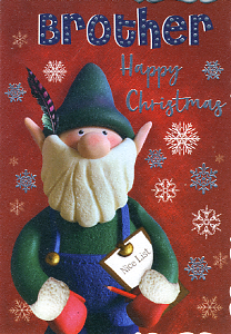 A Christmas card for your Brother featuring a cute elf complete with pointy ears and a green hat! This elf is busy checking the nice list, which I'm sure your Brother is on! The front design is finished with silver foil detail and has shaped edges. Inside the card has a full colour print insert with a loving printed Christmas message on. This Christmas card comes with a red envelope.