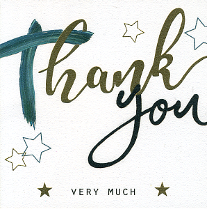 A small thank you card with a simple, but striking design. The front design has bold writing set on a crisp white background and is enhanced with gold foil writing and gold stars. Inside the card is left blank which leaves plenty of room for your own personal message. This card comes with a brown kraft paper envelope.